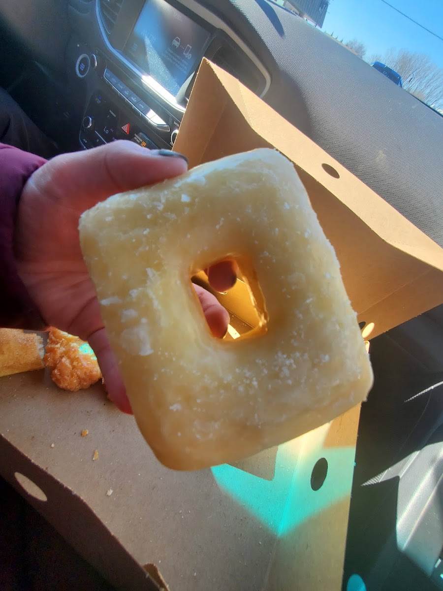 We have been coming here since we moved to Eagle Mountain 12 yrs ago. Best square donut ever! In fact I don't even really like donuts but I really like these. I never minded it's original tiny, cramped storefront -- and obviously this bakery was very popular and legendary with the locals. It's a small local business right on the Main Street with unique tasting donuts and dinner rolls. Another fave of mine is the strawberry cream cheese streusel. They recently tore down their original tiny bakery and renovated and now it's bigger and brighter and newer inside! I love that they have more than one register now, so during the busy morning time... the line goes by faster.