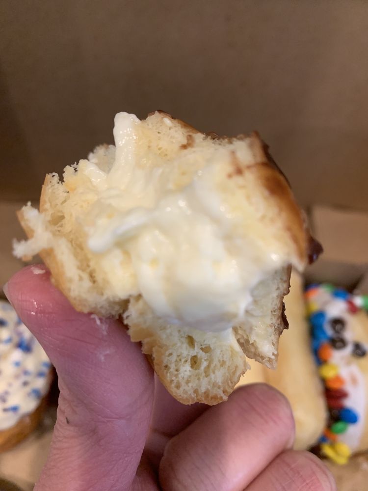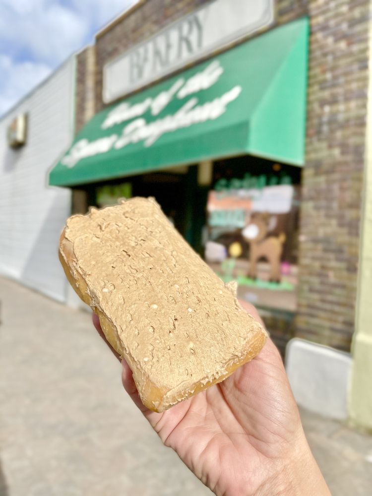 Maple bar topped with maple icing. Optional Bacon and Almonds topping.