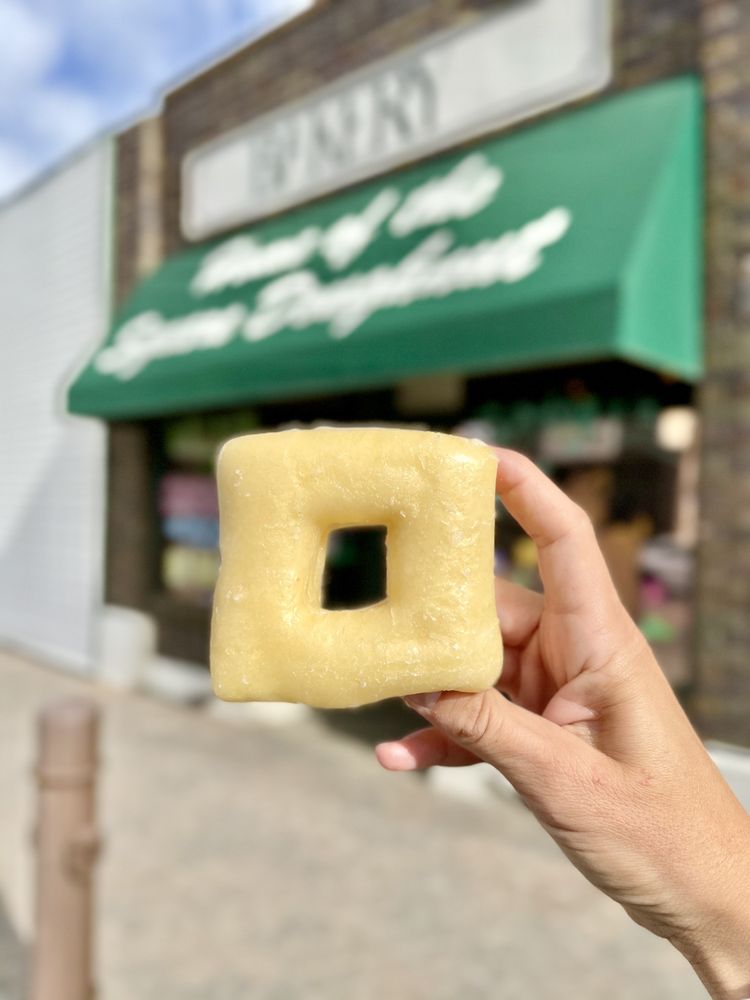 Mini square donuts. Choose from glaze, chocolate, or cotton candy (pink or blue) icing.